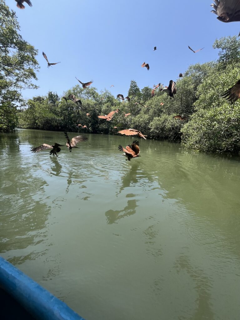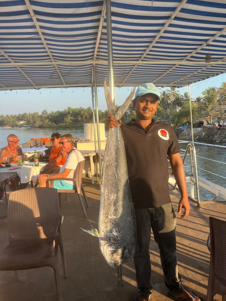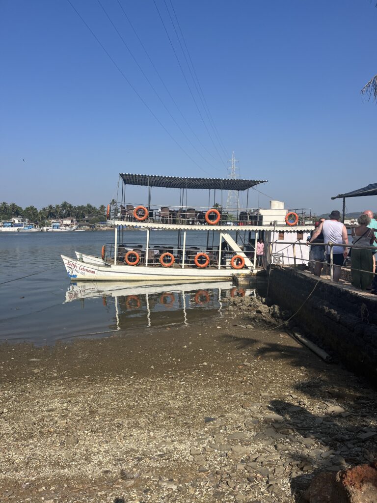 Went on a boat trip today with Betties Boats, a very worthwhile excursion. The boat leaves at 4pm and gently cruises up the Sal river, beautiful scenery. The boat isn’t crowded, nice chilled vibe, all drinks included, we had cocktails, G&Ts plus beers, and they serve a 4 course meal gradually during the cruise. After the river bit you go out to sea and watch the sunset, a tremendous 4 hours of fun, good food, drinks and amazing scenery. Guess what the whole thing cost £10 each. If in Goa you must do this!