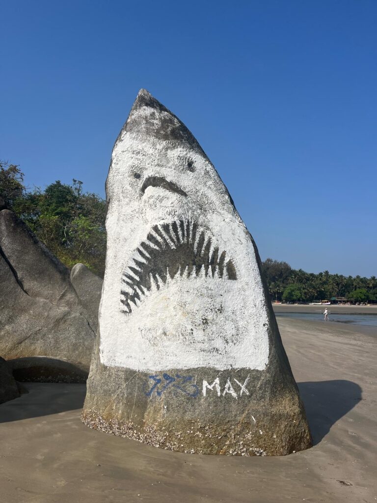 We had a great little studio Airbnb, comfortable bed, lovely shower, aircon and a decent fridge for £25 per night. After a day down there we decided to extend our 3 nights to 5. It’s a lovely vibe down in this part of Goa, beaches are a bit more pleasing on the eye and varied, and the crowd is definitely a bit younger than the mainly well retired age group that you find up in Colva. Well worth the trip.