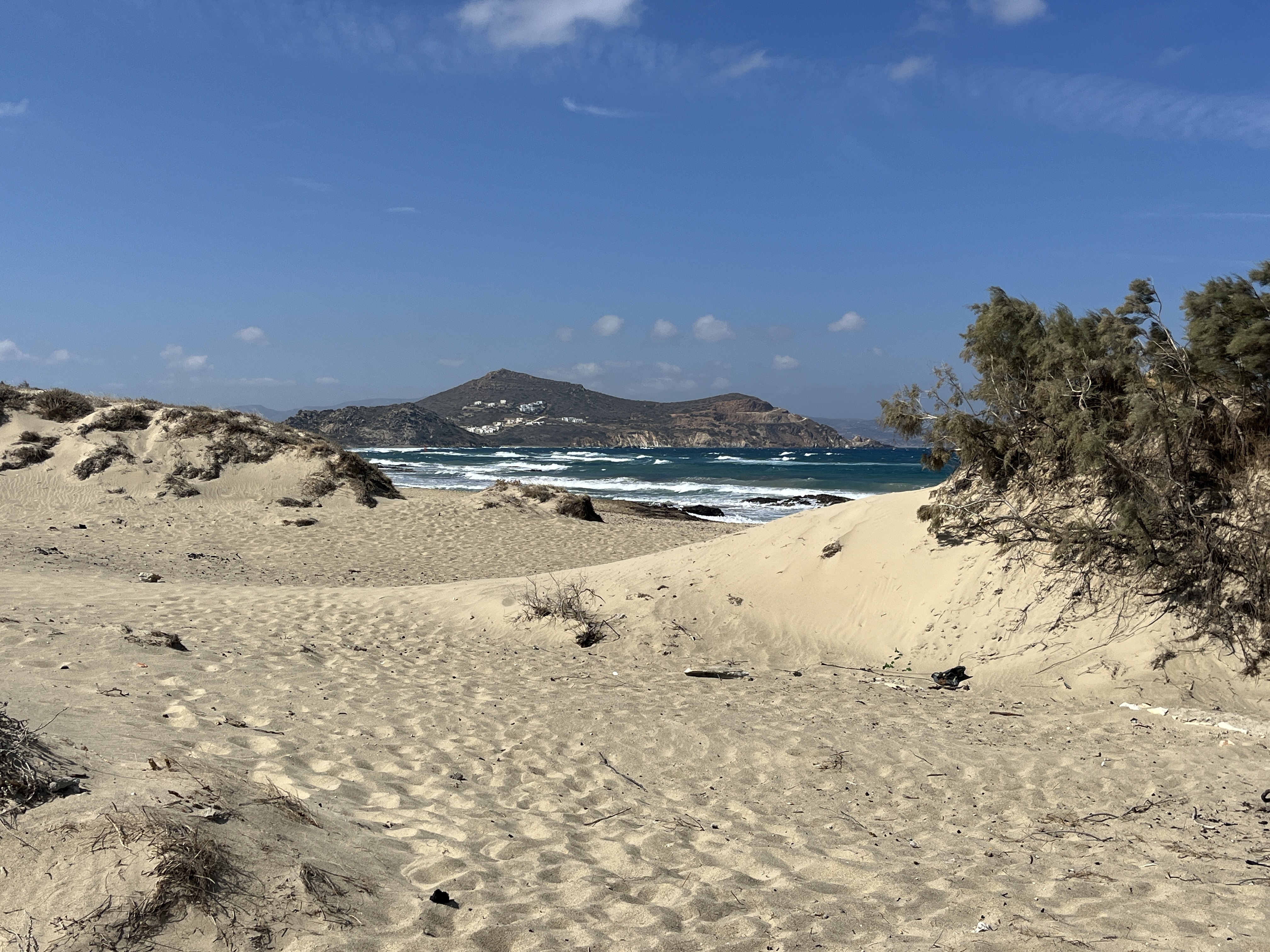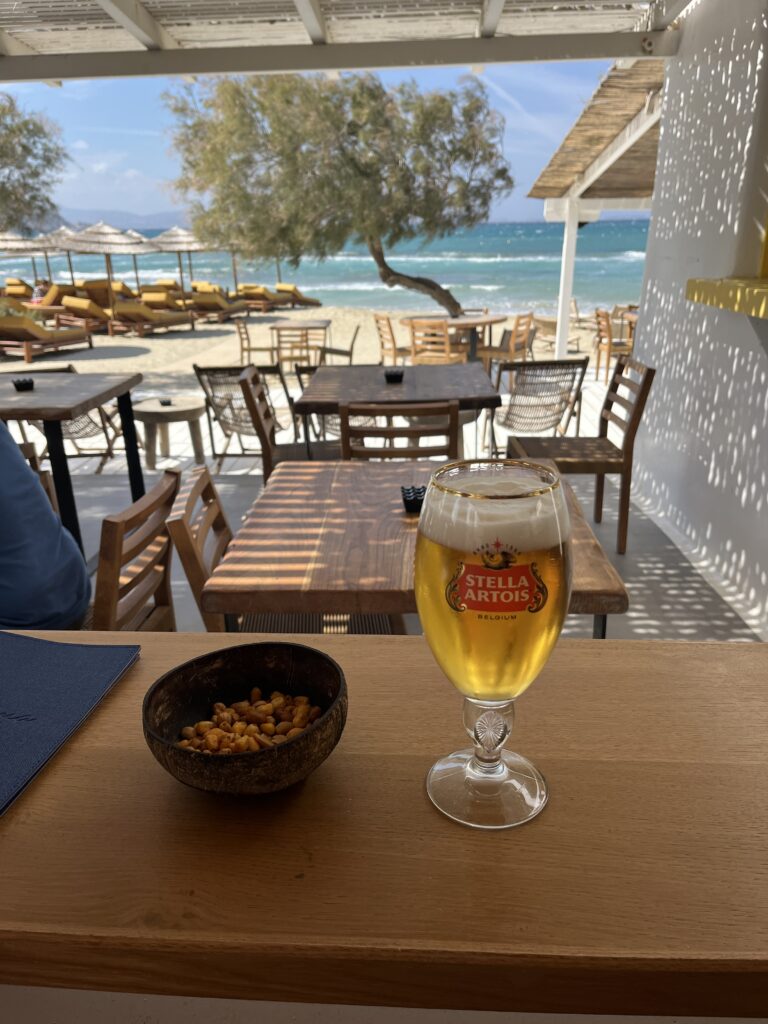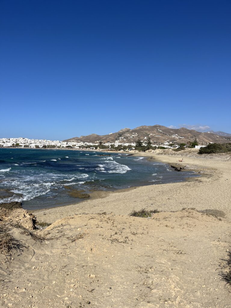 Had a lovely ferry journey from Paros and arrived at a very busy Naxos port. Walked to our apartment and first impression of the town is that it’s very nice. We were able to check in early and the airbnb was very nice too. Found a supermarket to get some provisions, and then headed out for a walk to the nearest beach, Agios Georgious, only about 5 minute walk away. It was a fairly windy day so we just had a walk up and down the beach, had a nice drink at one of the many beach bars, and then headed home. Went out for a pizza tonight and it was an excellent one.
