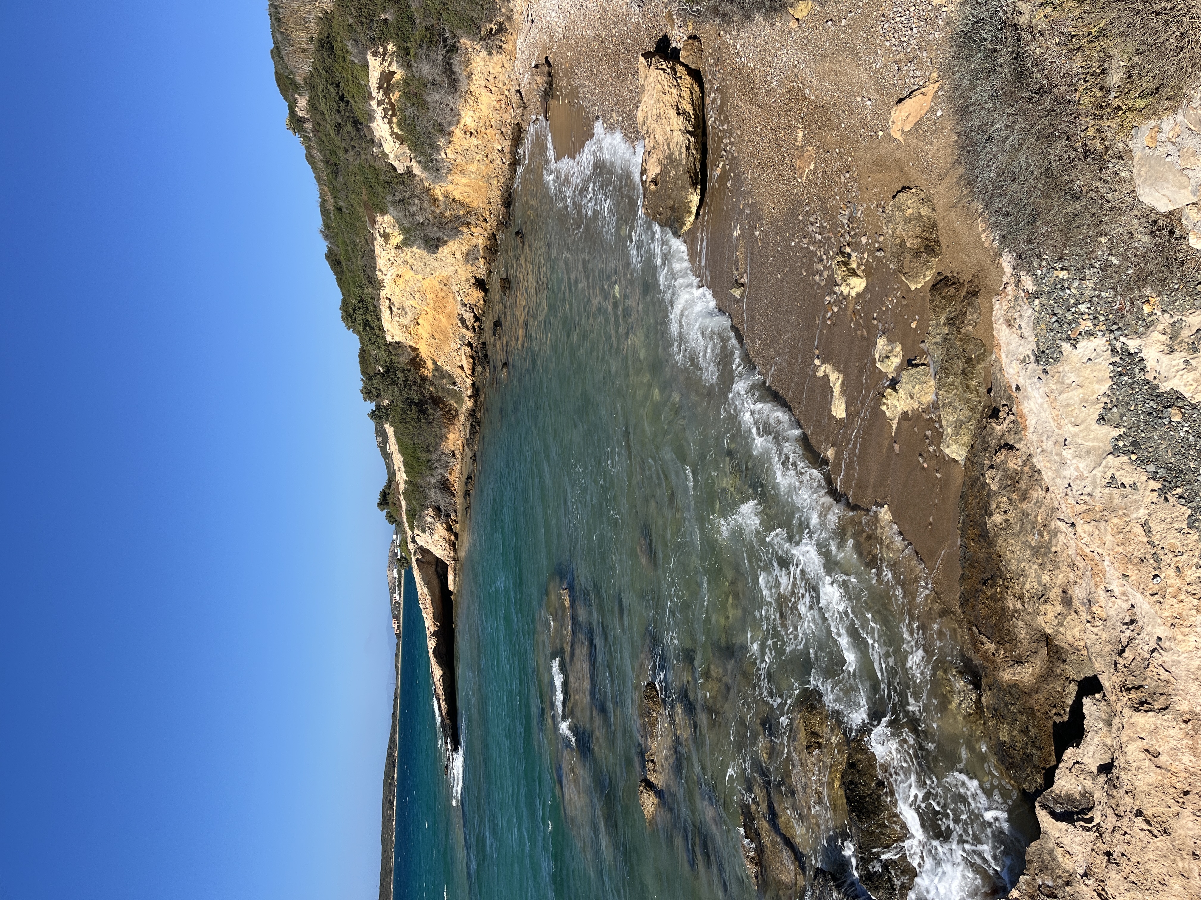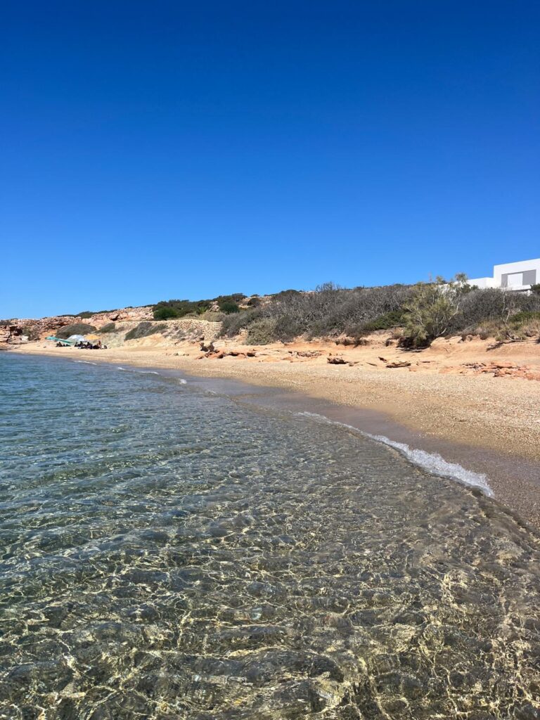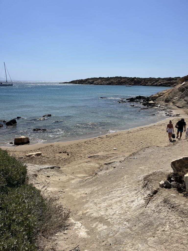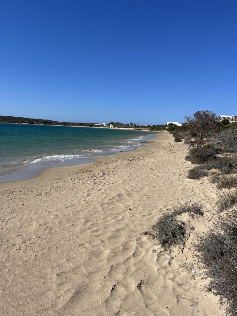 On our last day in Paros the wind did not relent so we planned on getting a little ferry boat across the port to a beach called Krios, which is protected from the north winds. However the ferry wasn’t running due to the weather so we walked round which took about an hour. Lovely easy walk with some great views and it was worthwhile because the beach was lovely.