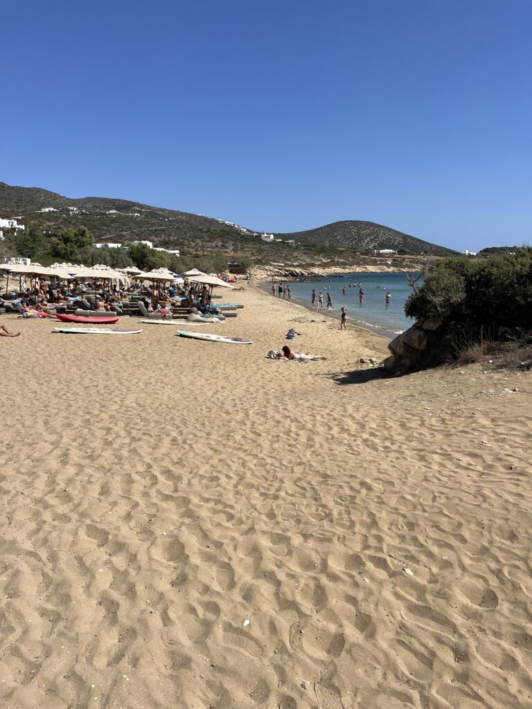 Day 4 was a much calmer day so we found a lovely little beach on the west coast called Voutakos. Quite secluded, not a tourist trap so mainly just locals go there. Good spot for a skinny dip if you fancy that, beautiful water as always. Last night we also strolled into Parikia to see what the town was like at night, it’s another beautiful place amongst all the other beautiful places we’ve seen. Greece and the islands just keep on giving.