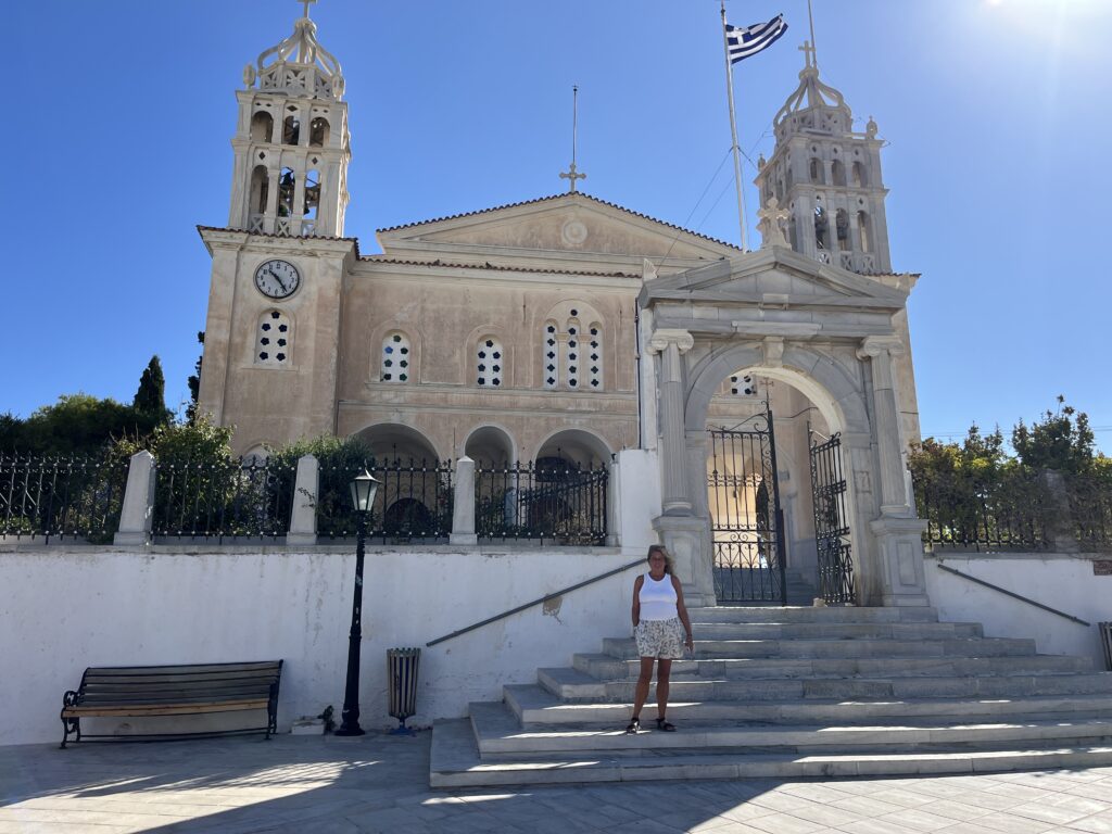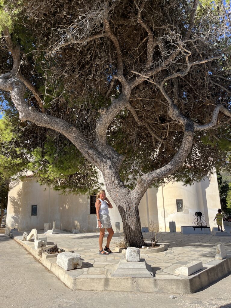 On day 2 we picked up our little car and headed off to Aliki, a little town on the south west of the island. Very pretty little port with restaurants and cafes, so had a nice walk around but it was a very windy day so the beaches weren’t suitable there, so after a coffee stop we drove to Faragas a bit further down and this was beautiful. A fairly large main beach with an excellent beach bar, and two smaller coves to the right of the main beach. This was more sheltered from the wind so we spent a lovely afternoon here.