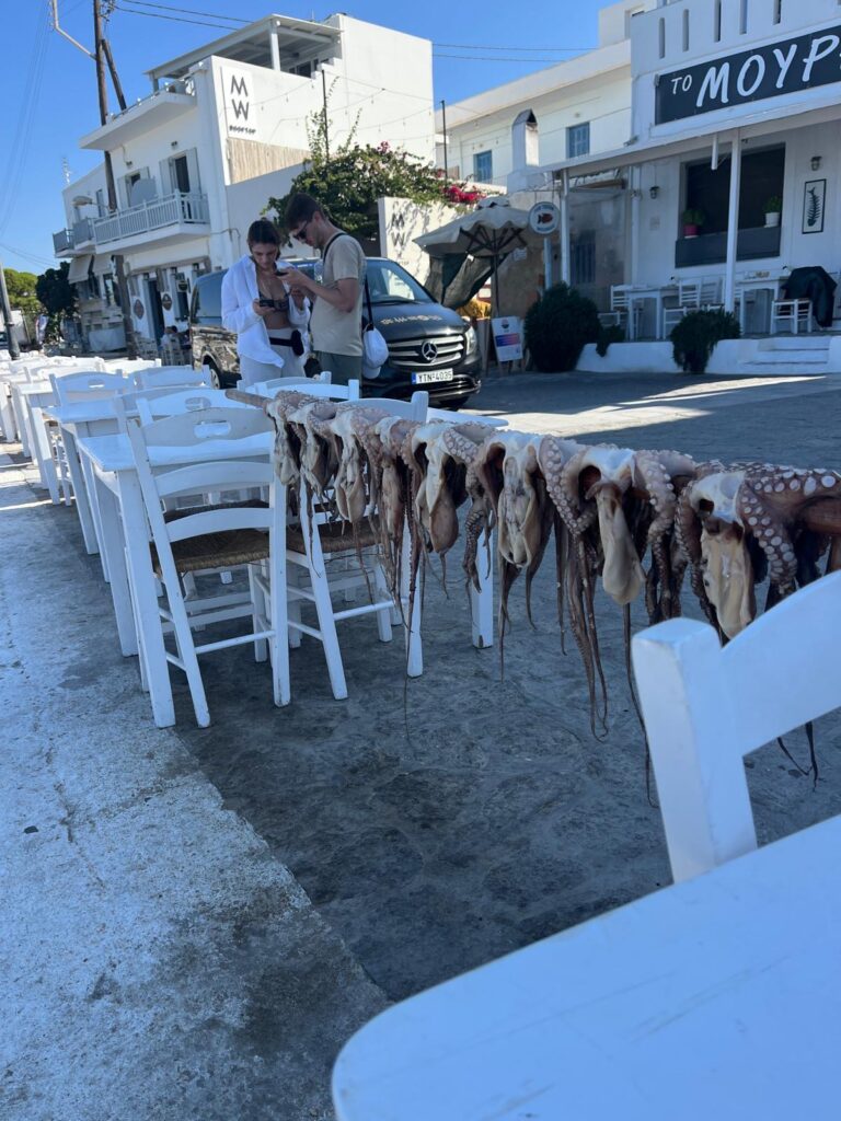 On our last night in Paros we went to a popular restaurant called Bountaraki which was very good. They don’t take bookings, and there is a queue from 6.30 until 9pm to get in, so go early. Very good authentic greek cuisine.